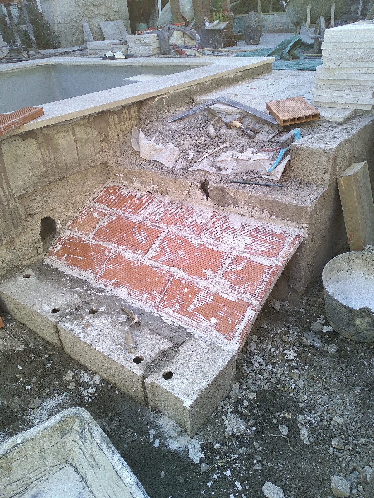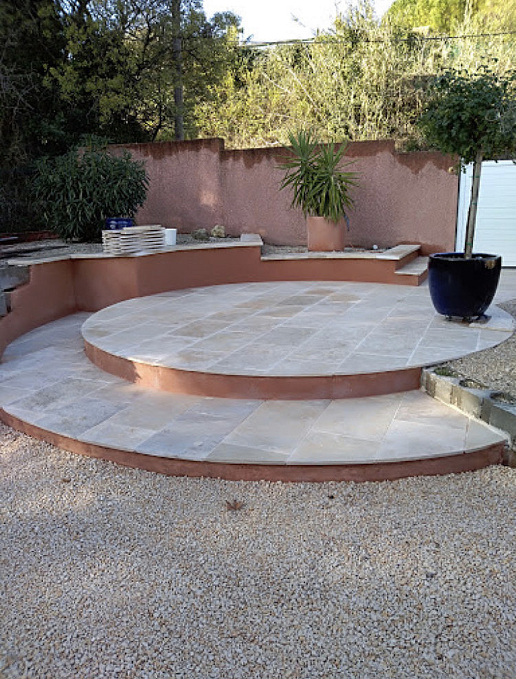 Calades, terrasses, plages de piscine, salle de bains, maçonnerie pierre, enduits chaux, construction sur élévation, restauration...